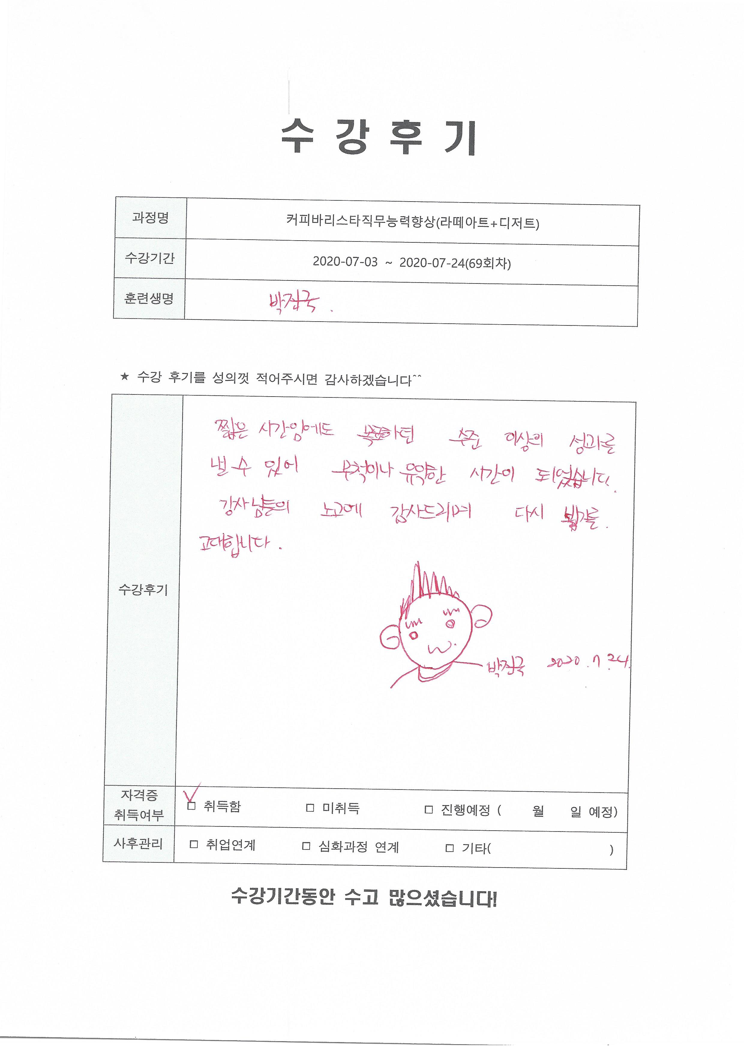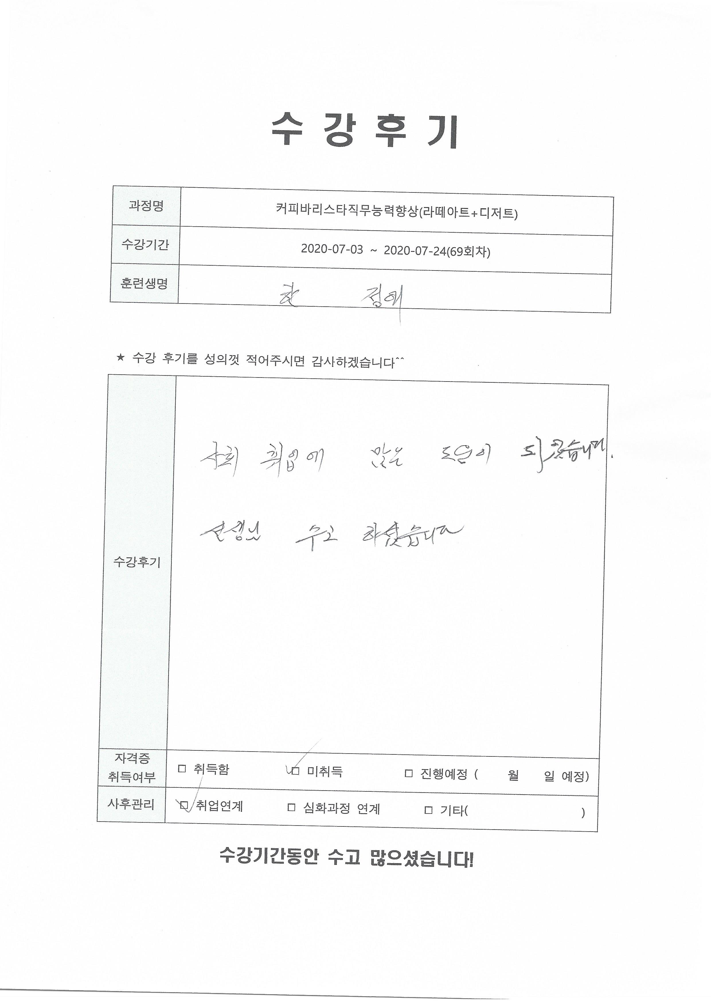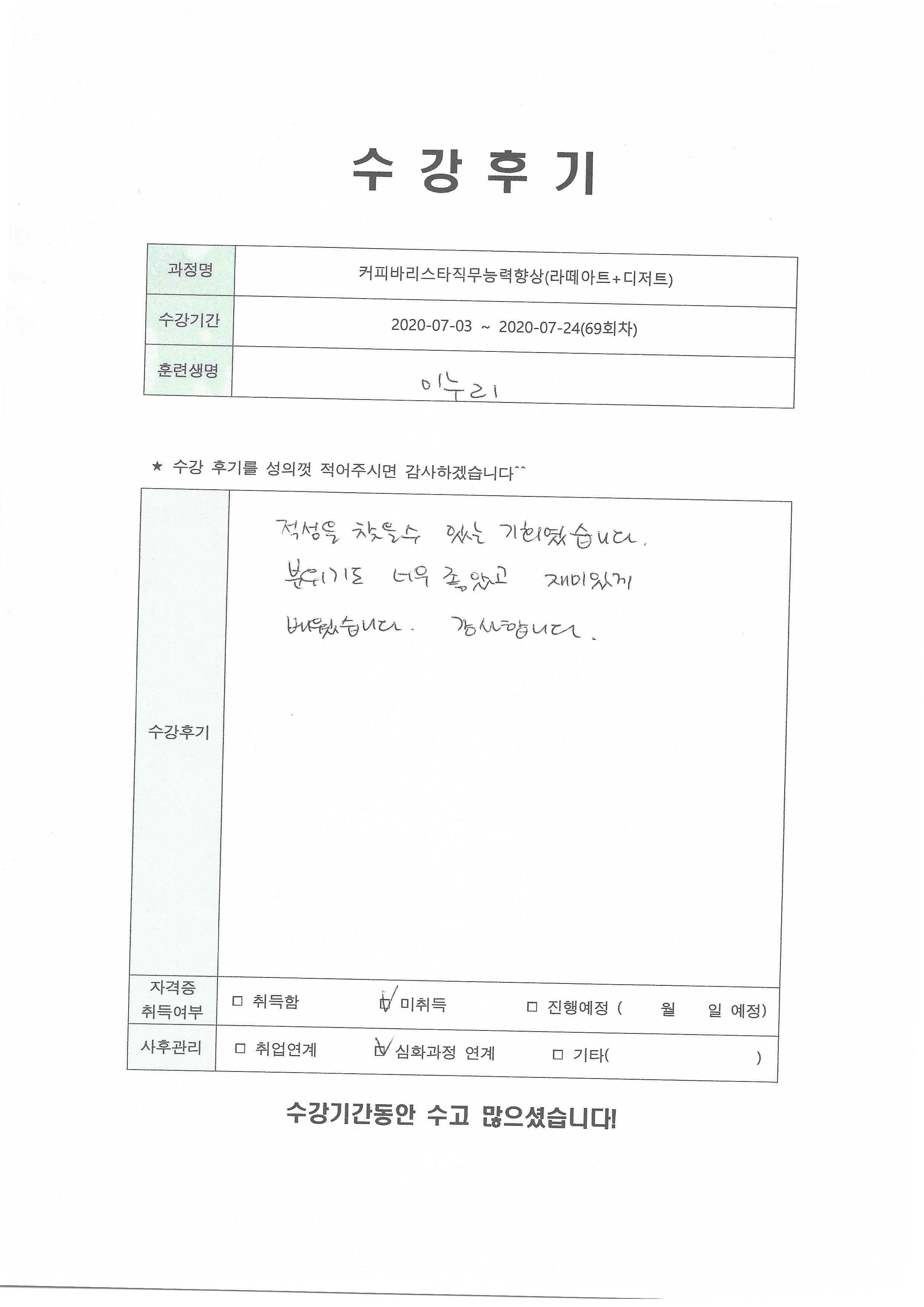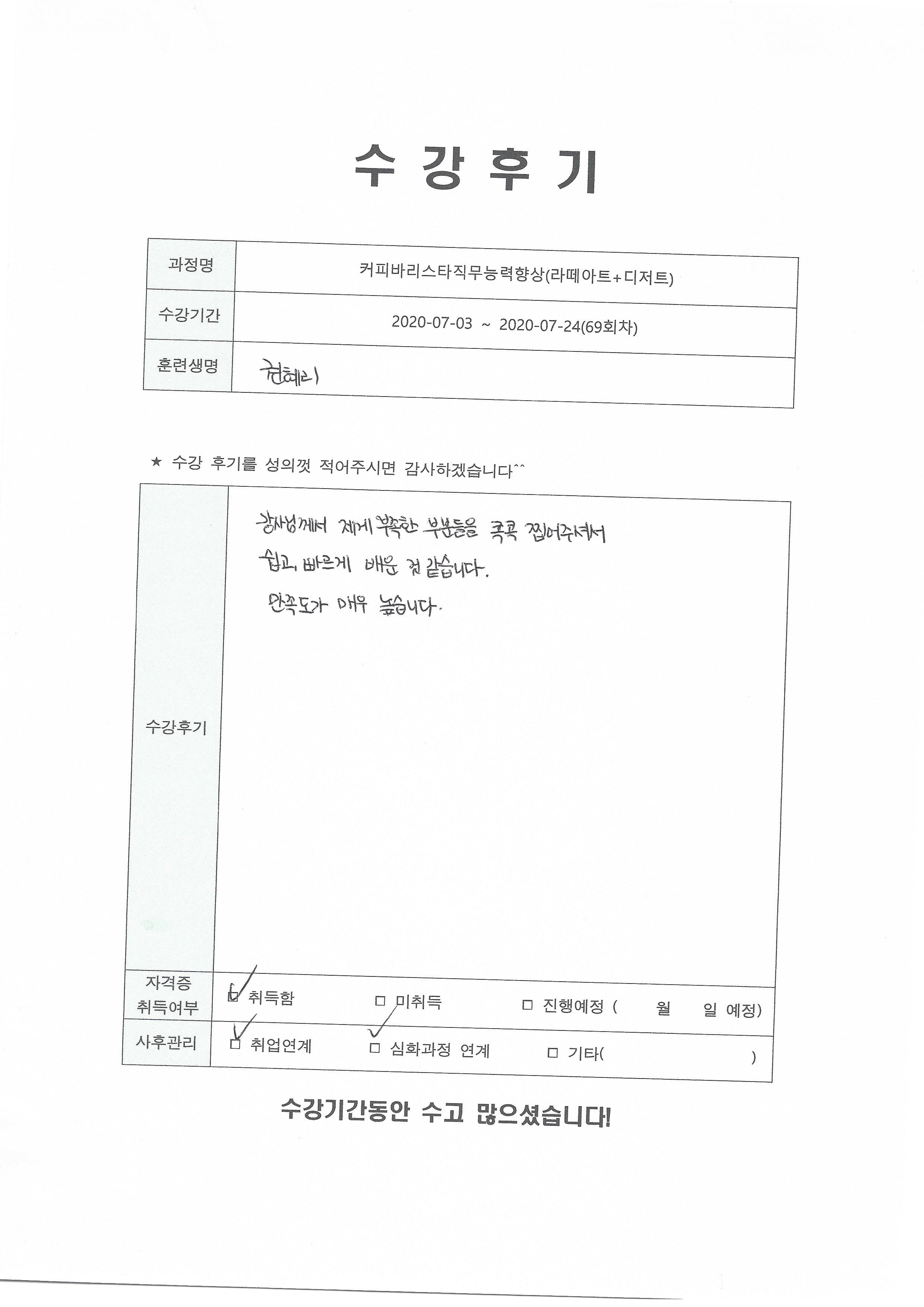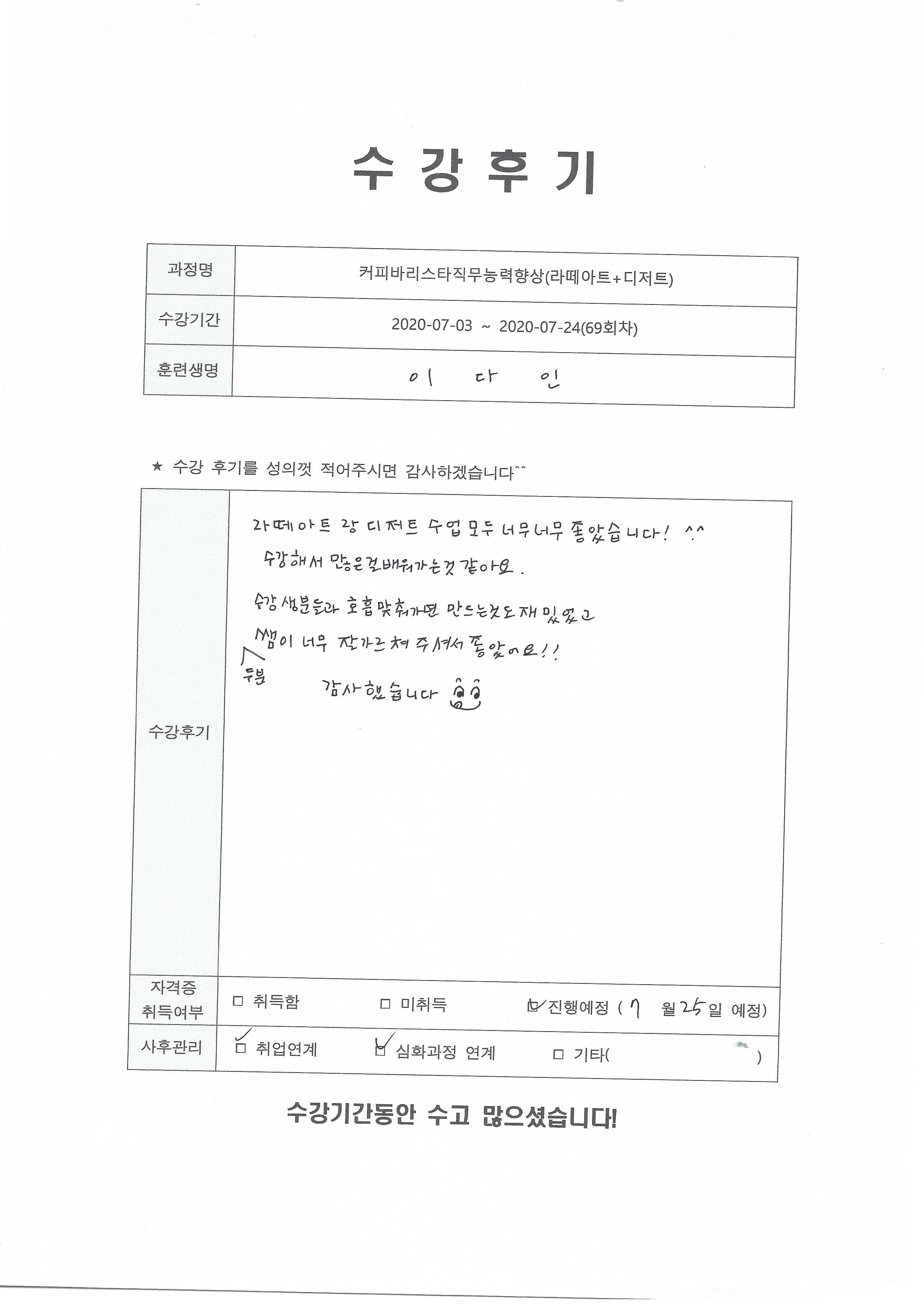 커피바리스타직무능력향상(라떼아트+디저트)(69회차) 수강평