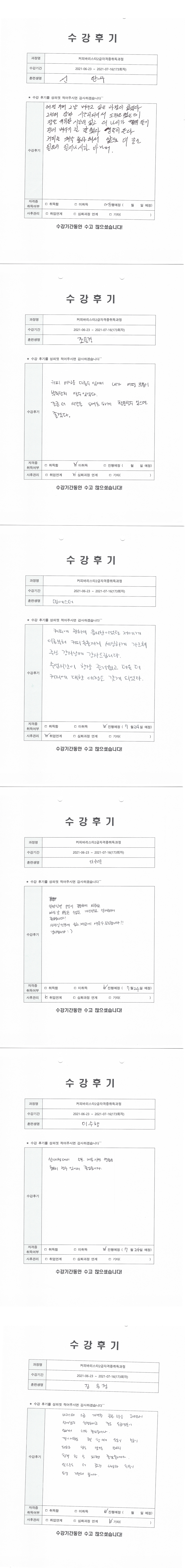커피바리스타2급자격증취득과정 (173회차) 수강평