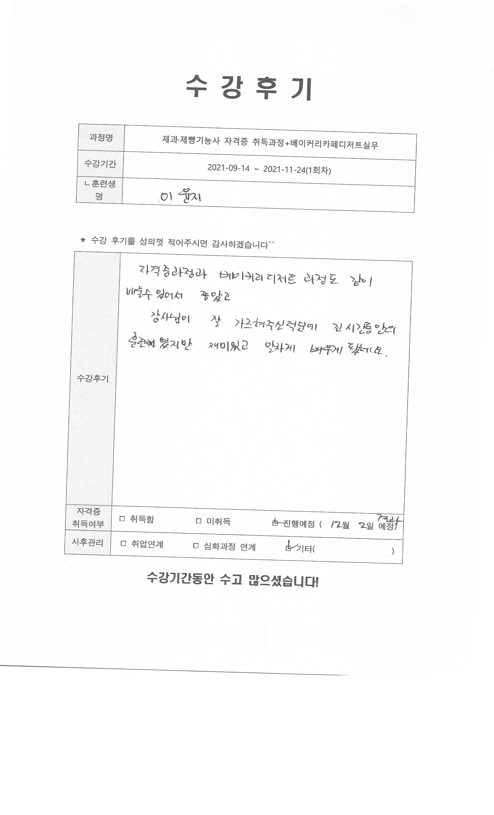 제과제빵기능사자격증취득과정+베이커리실무 1회차 수강평