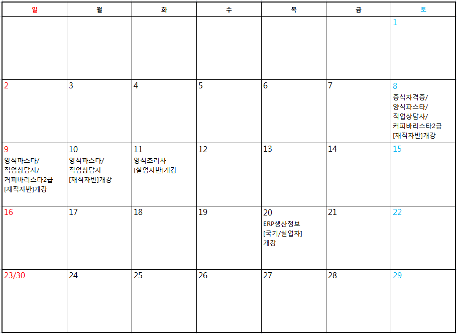 *개강일정 참고 하시고 접수 문의 바랍니다.